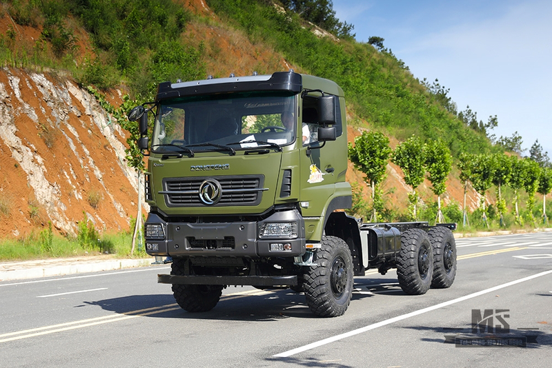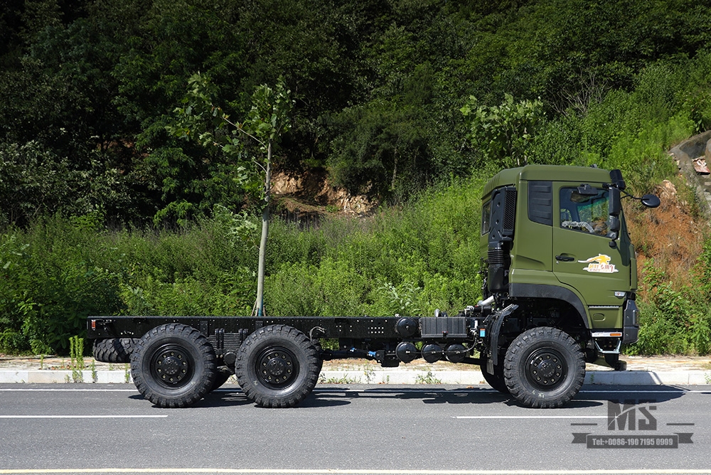 O chassi do veículo especial 6x6 Dongfeng tem uma massa total de até 25 toneladas.Sua tração nas seis rodas permite dirigir em estradas de montanha, florestas e outras áreas.É adequado para conversão em veículos pesados especiais, como caminhões de carga, caminhões basculantes, caminhões betoneiras, etc.