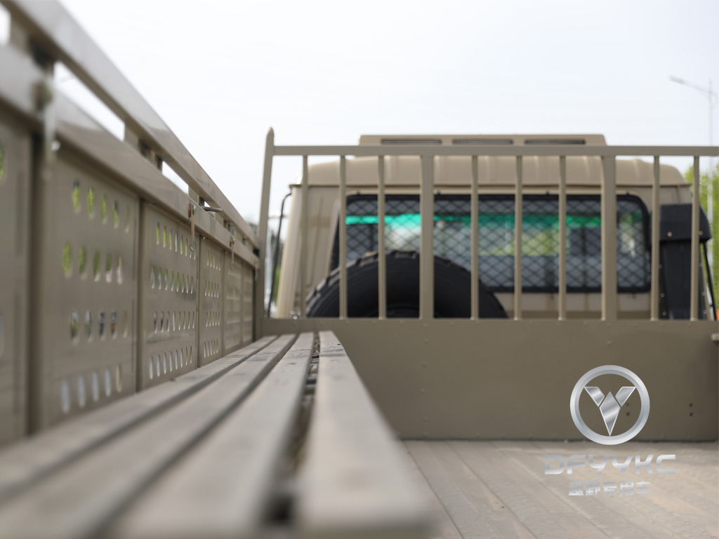 A caixa de carga é feita de estrutura de ferro pura com placa de trilhos alta, banco de assento opcional nos dois painéis laterais, placa não eliminada no painel inferior, a placa traseira pode ser aberta para baixo e há uma escada dobrável para entrar e desligar a caixa e, ao mesmo tempo, existem vários blocos anti-colisão. A lona é presa com corda de borracha elástica e ganchos.